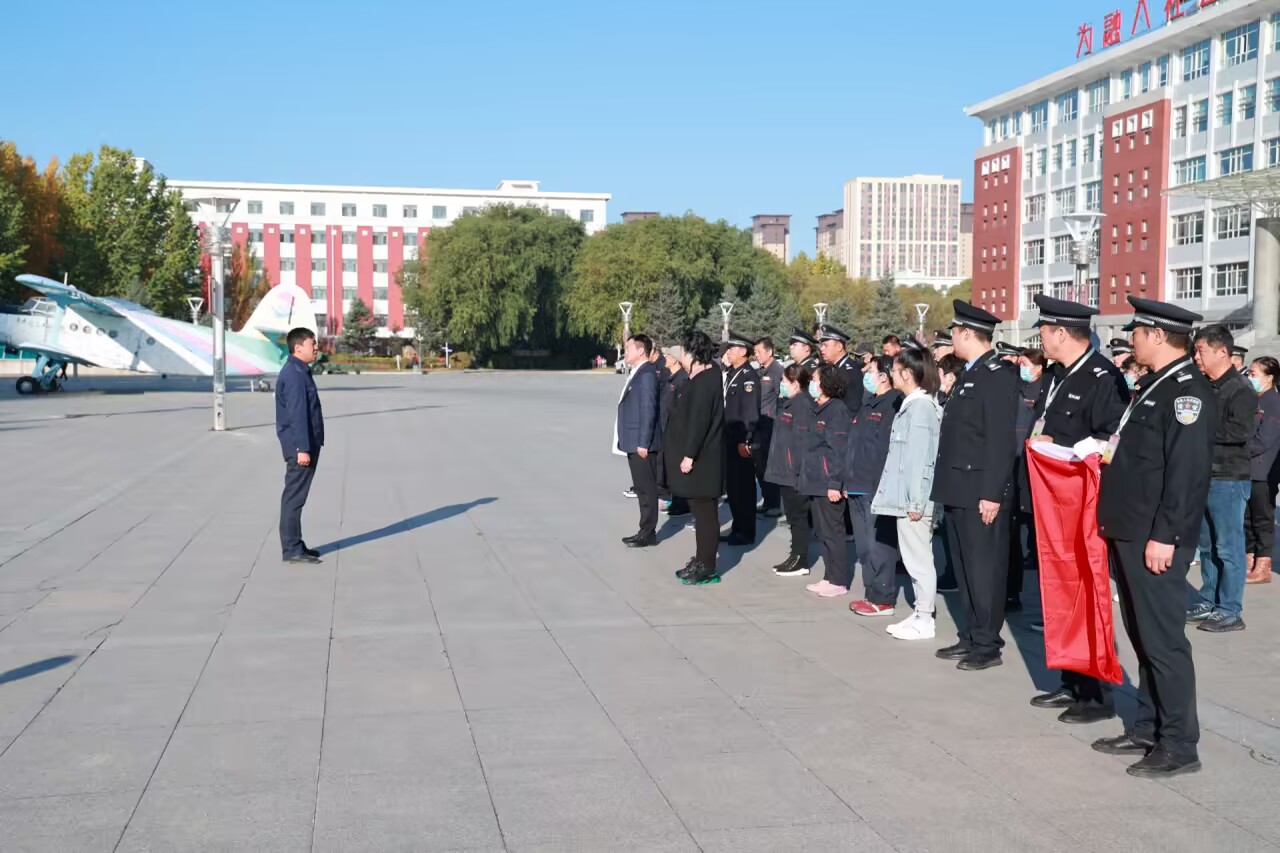 2023年10月11日早上8时,学校后勤服务总公司在明德广场举行宣誓仪式,后勤服务总公司副总经理、基建办主任崔晓东,总务处副处长宋兴蕾,科技园负责人、保卫处副处长成超以及全体后勤人员参加。