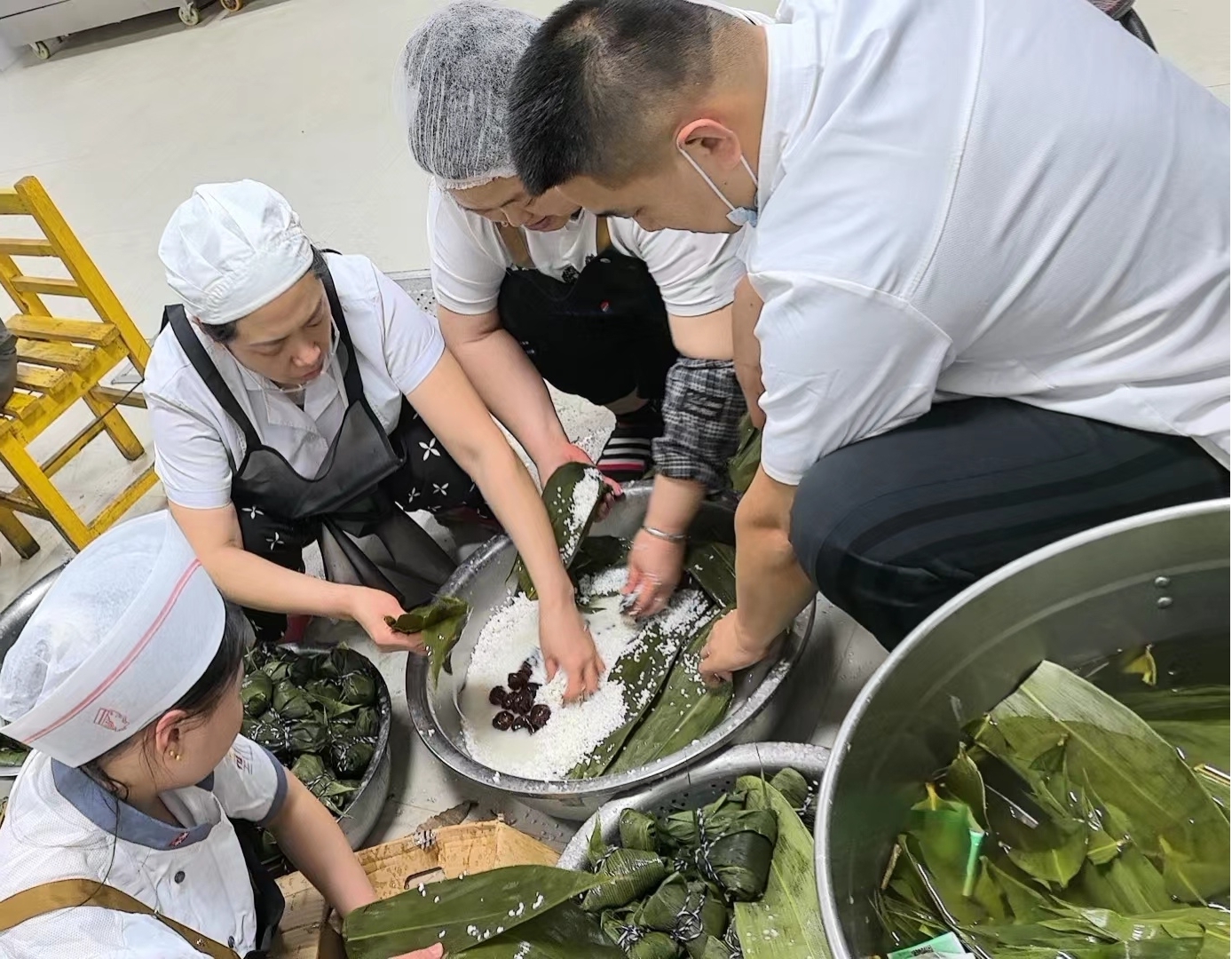 为了参加2024年6月1日美食节,同时也为了给大四即将毕业的学生践行,总务处30名工作人员于5月29日开始采购端午节包粽子所需食材,5月30日将糯米和竹叶提前浸泡,5月31日总务处30名工作人员亲手为学生包1000个粽子用时6个小时,包粽子现场气氛浓厚,大家非常高兴能为大四即将毕业的学生亲手包一个粽子,粽子虽小,情谊确深。