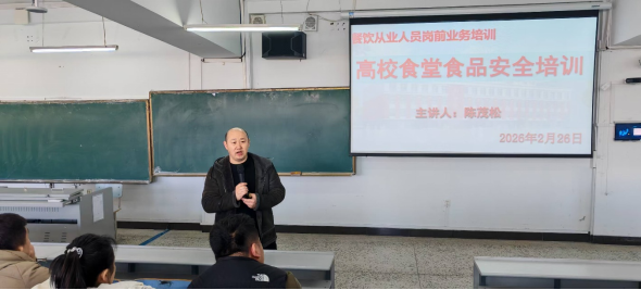 2月26日上午,总务处食品卫生监察科在图书馆201室召开餐饮从业人员岗前培训会。培训内容围绕校园餐饮文化、学校发展规划、食品安全要求等方面开展,并现场考核学习成果。