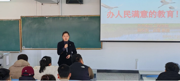 齐齐哈尔工程学院副校长白雪首先以“办人民满意的教育”为题,从物质文化、精神文化、制度文化及餐饮文化等层面详细地解读了学校的校园餐饮文化,并通过对2025年工作回顾,要求业主们在服务中持续自我提升,将文化内化于心、外化于行,让优秀成为习惯,在校园营造努力向上的良好氛围。白雪指出,文化就是不约而同的行为,每一位员工都要有主人翁责任感,以学生为中心,诚信经营。随后,她介绍了学校产教融合基地建设、经营情况以及东区的项目规划,鼓励业主跟上学校发展的脚步,在齐工程抓住机会,借助学校提供的平台,牢固树立“学校主导、业户收益、学生受益”三位一体的餐饮文化理念。