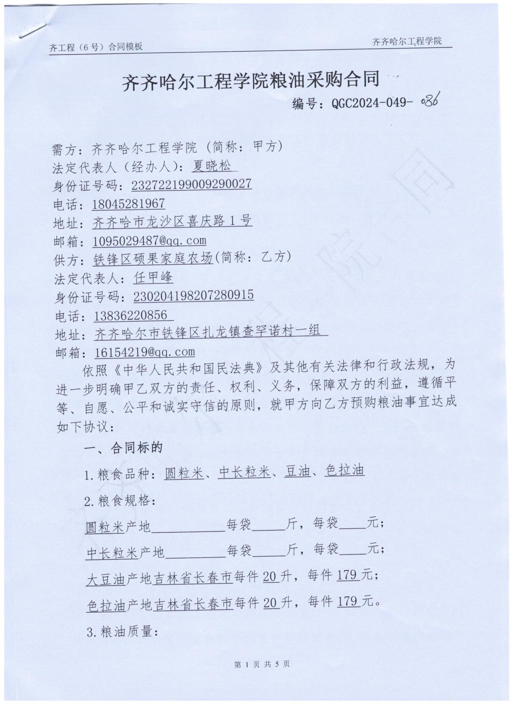 2024年粮油采购合同2