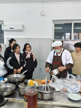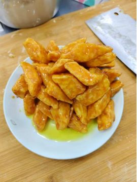在接下来的烹饪实践课上,学生们在专业教师的指导下,亲自动手制作拔丝地瓜。从选材、切配、调味到烹饪,每一步都充满了乐趣和挑战。教师们耐心讲解每一个步骤,学生们则认真听讲、积极实践,课堂气氛活跃而温馨。在制作拔丝地瓜的过程中,学生们学会了如何挑选优质的地瓜,掌握了切配技巧和炸制火候,更在教师的指导下,成功完成了拔丝这一高难度的烹饪技巧。当一盘盘金黄酥脆、拔丝绵长的地瓜端上餐桌时,学生们脸上洋溢着成就感和喜悦。